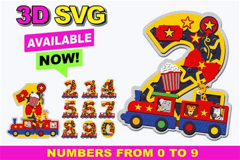 Safari Animals Train Numbers 3D SVG